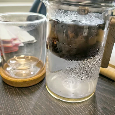 2. Zalej herbatę gorącą wodą. Dzięki przezroczystemu szkłu możesz obserwować, jak liście się rozwijają i jak napar nabiera koloru, osiągając idealną moc.